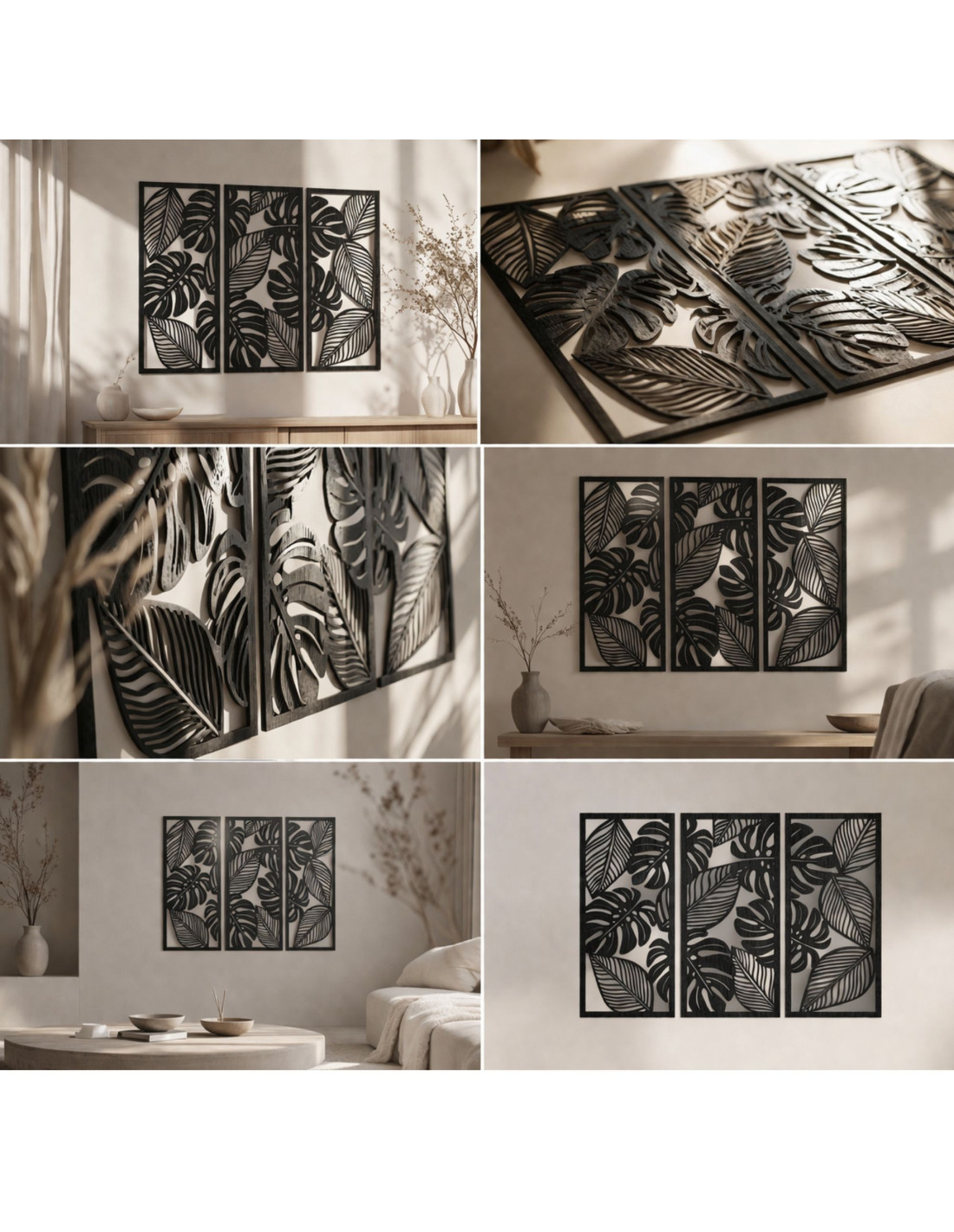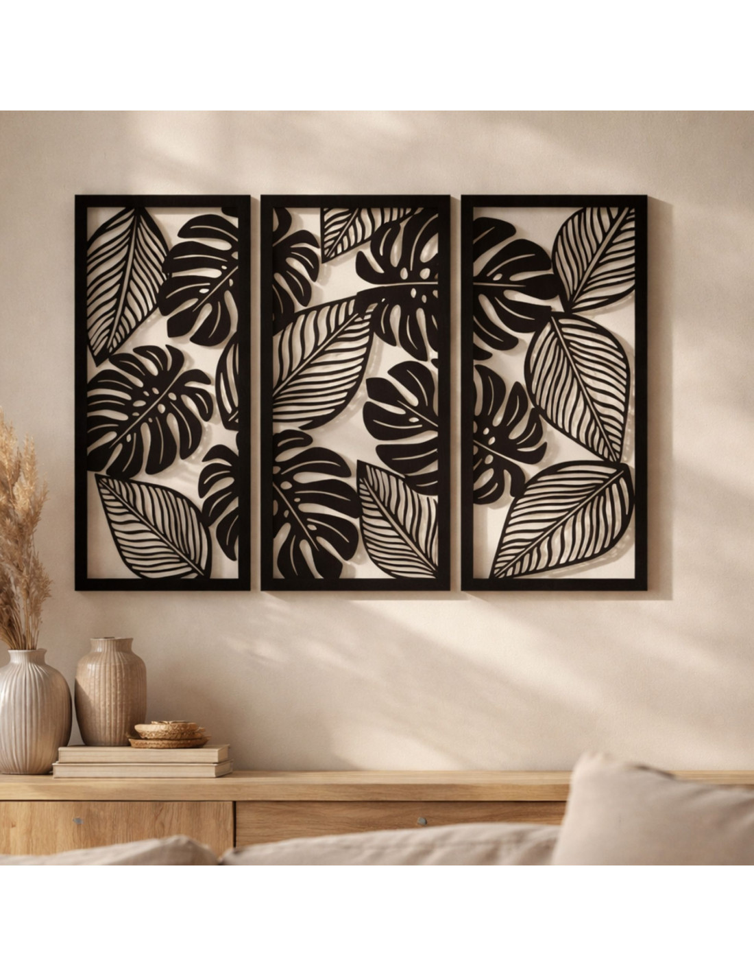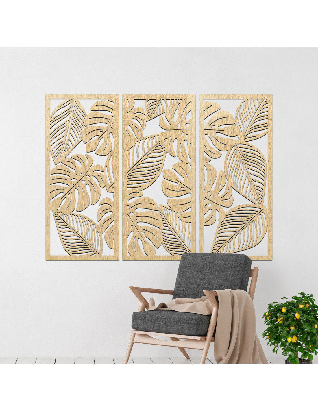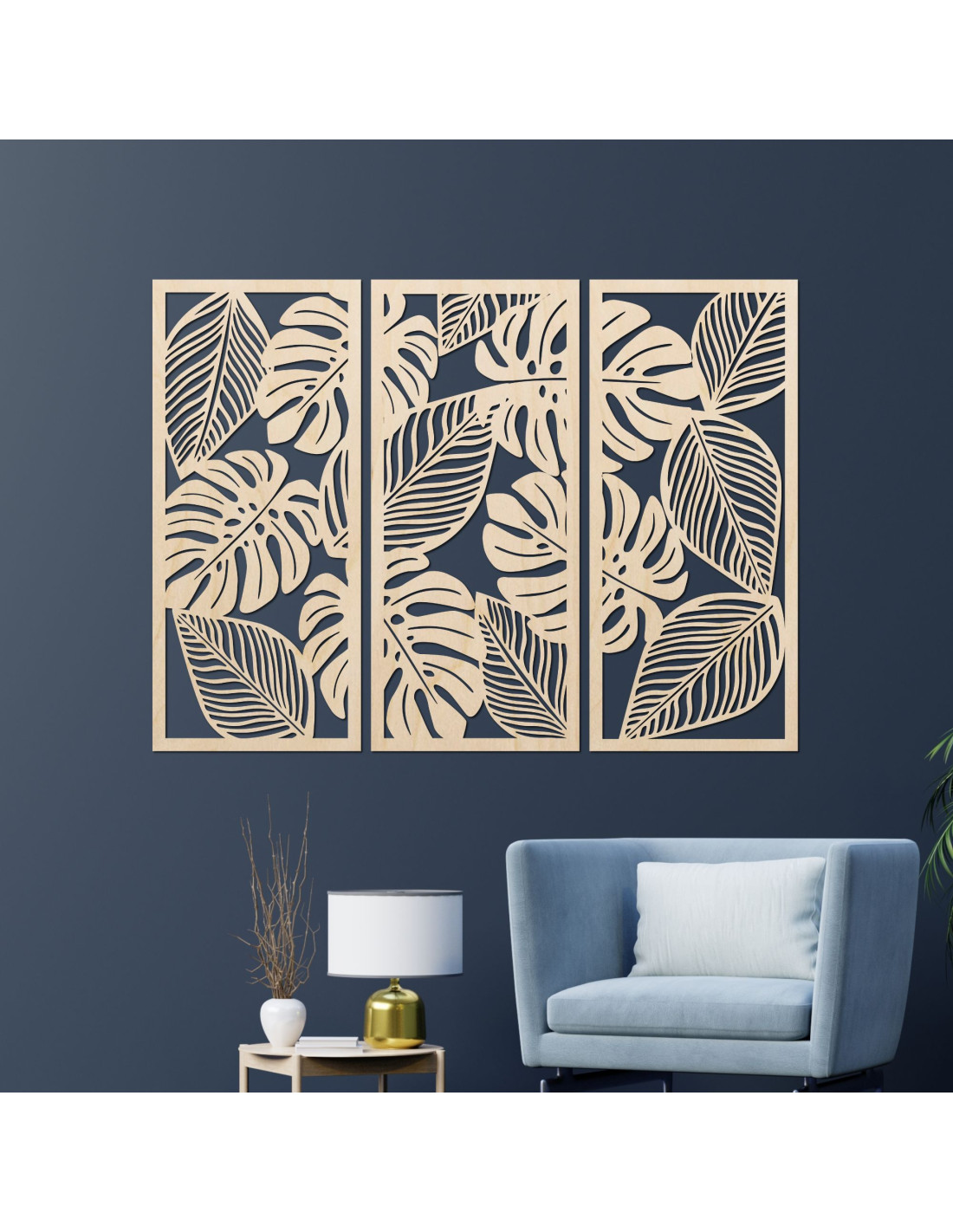 SentopDrevený trojdielny obraz s motívom monstera je dokonalým spôsobom, ako oživiť váš interiér a pridať mu na elegancii. S jeho jedinečným dizajnom monstera a detailným spracovaním dodáte akémukoľvek priestoru prírodný a útulný nádych. Tento obraz je ideálny na zdobenie stien v obývačke, spálni či kancelárii, kde sa stane stredobodom pozornosti.
