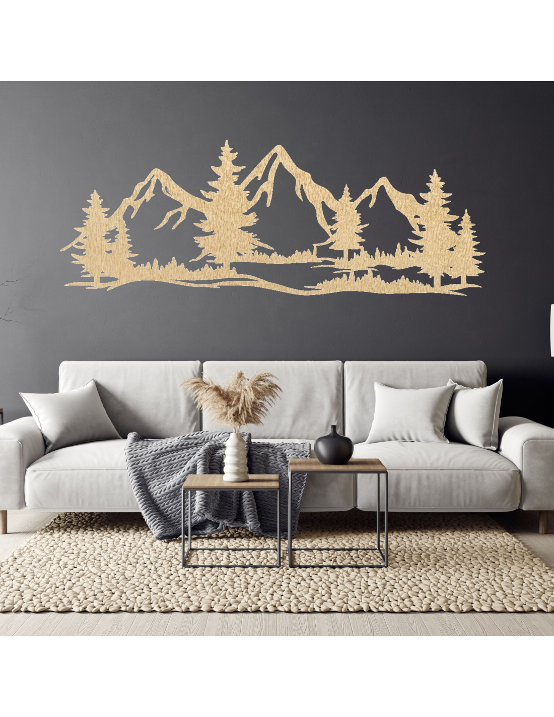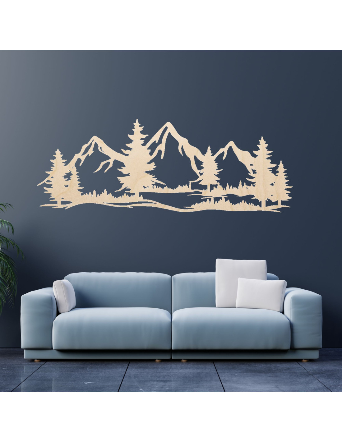 Drevená dekorácia na stenu mohutné hory a les - MAGNA