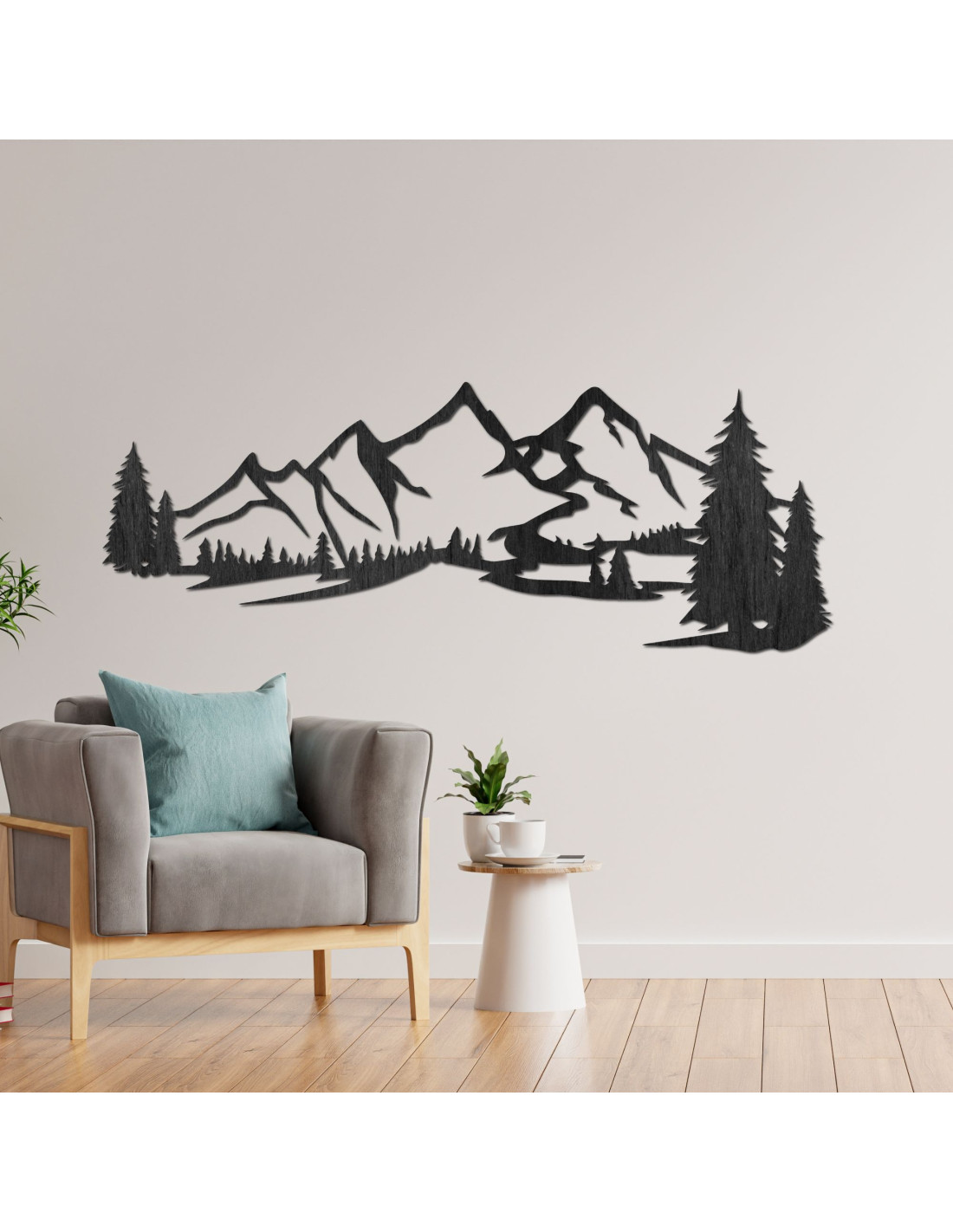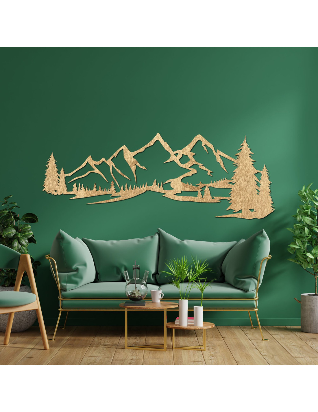 Drevená dekorácia na stenu s motívom horskej krajiny je moderným a elegantným doplnkom, ktorý prinesie do každého interiéru pokojný dotyk prírody.