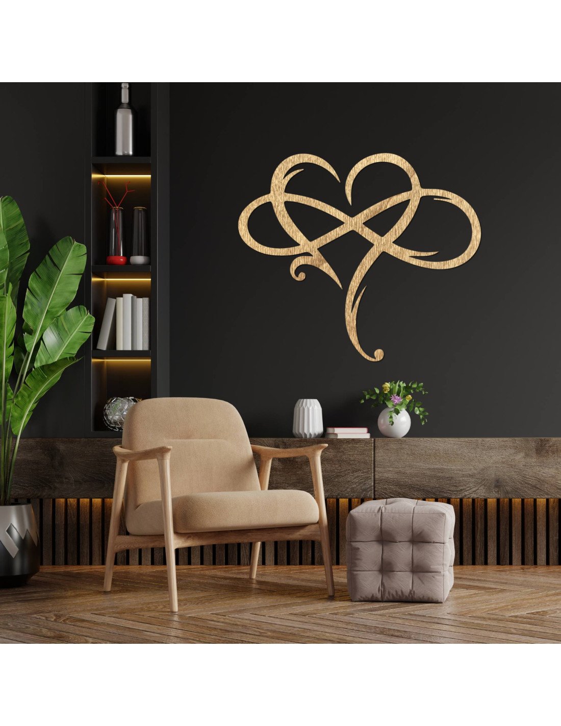 Obraz v tvare nekonečného srdca, precízne vyrobený, z kvalitného dreveného materiálu predstavuje symbol večnej lásky a pevného spojenia.