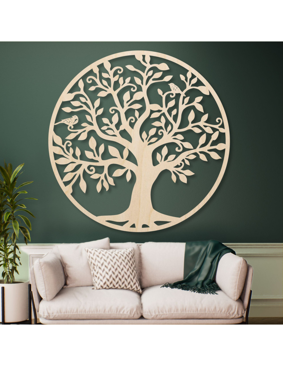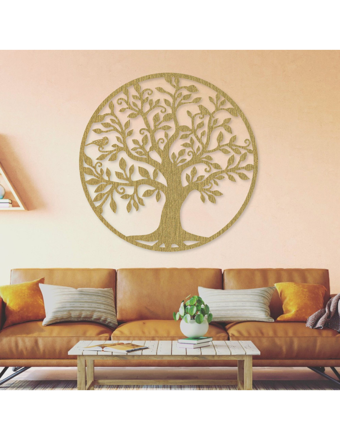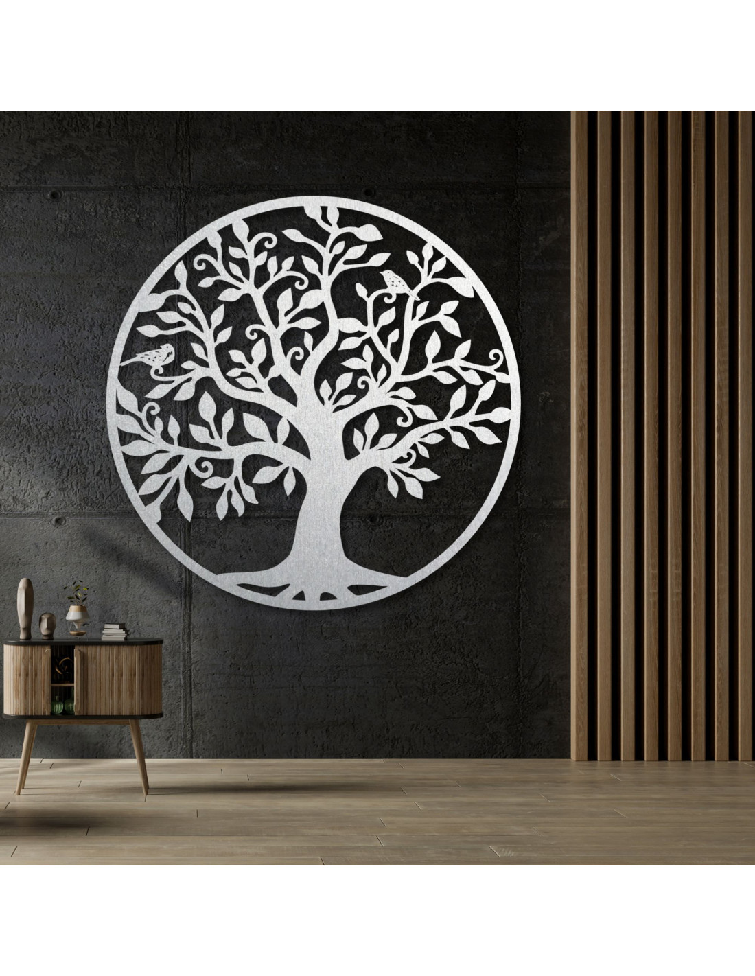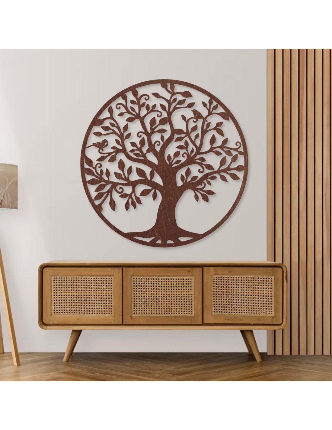 drevená nástenná dekorácia v podobe majestátneho stromu života dodáva interiéru nádych prírodnej krásy.