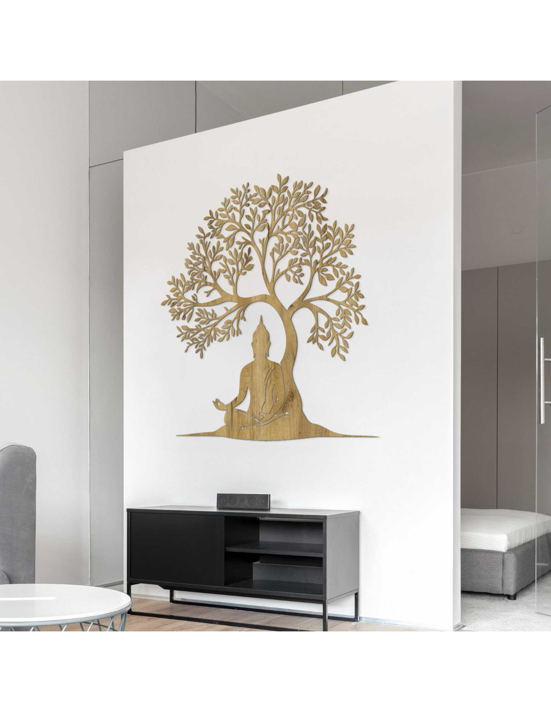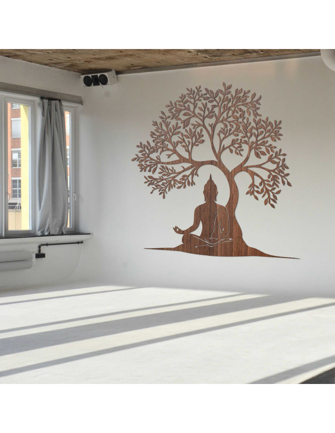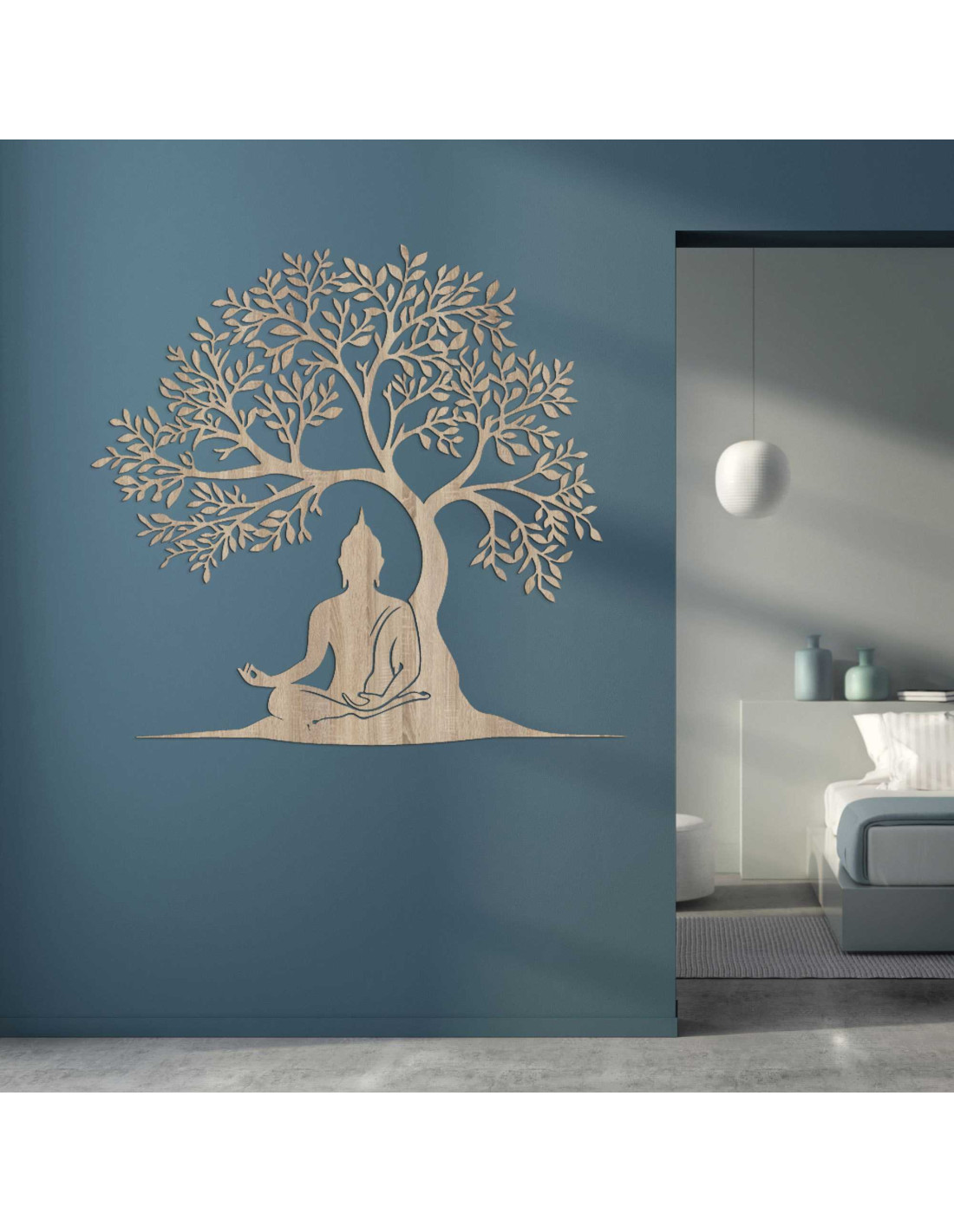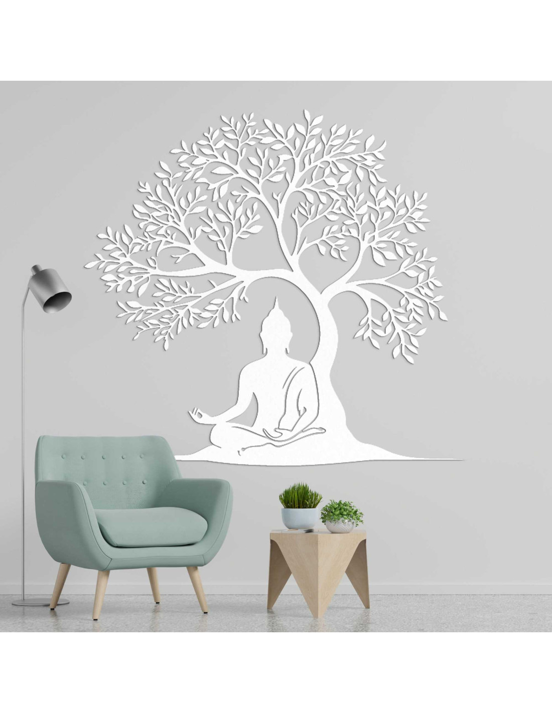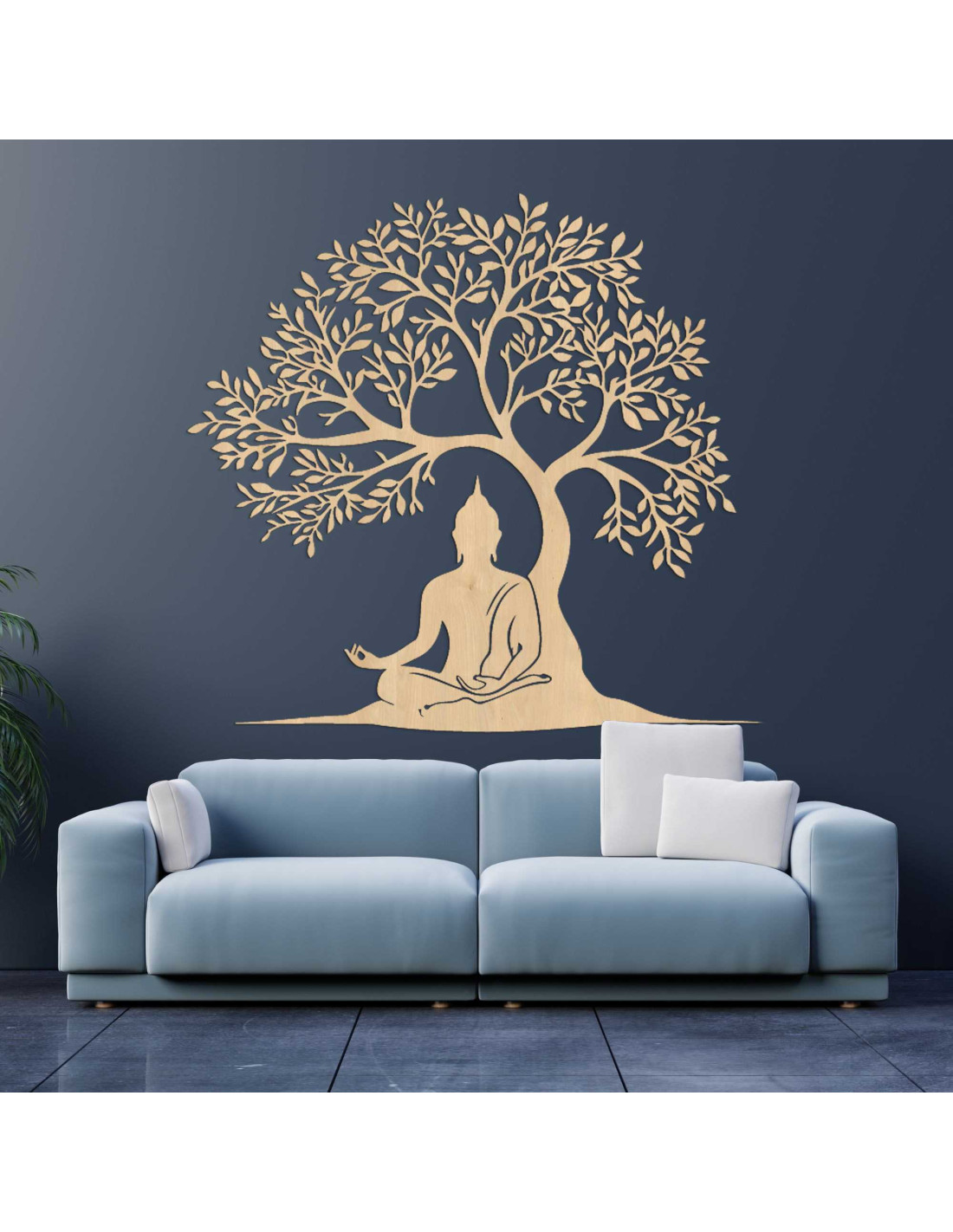 Dizajn spája posolstvo múdrosti a prírodnej harmónie do jednej výtvarnej kompozície. Buddha v lotosovej polohe pod stromom symbolizuje dosiahnutie osvietenia. Dekorácia je navrhnutá tak, aby vytvárala emocionálnu atmosféru bez použitia slov. Každý prvok má svoj účel a odkaz, ktorý pôsobí dlhšie ako bežný pohľad.