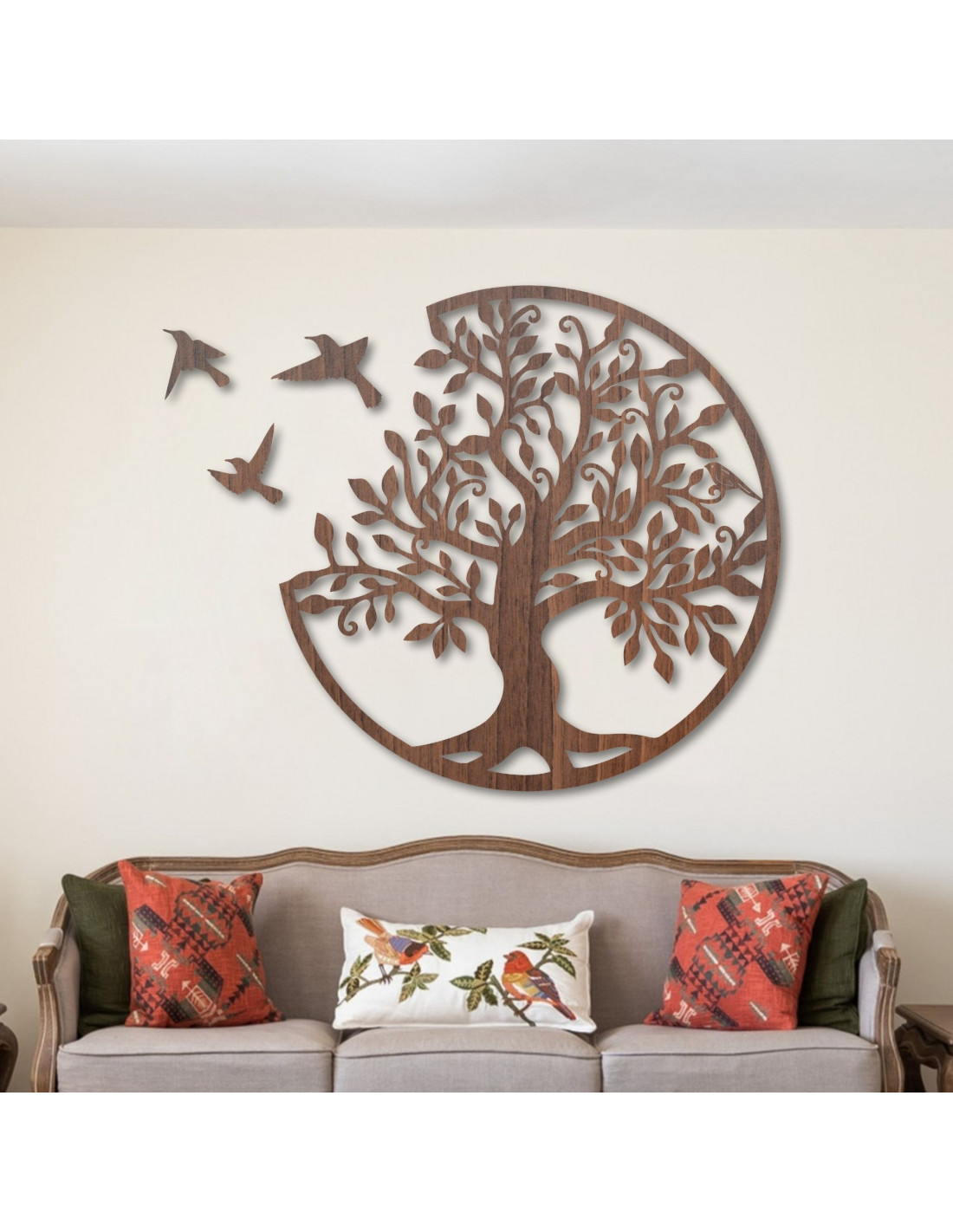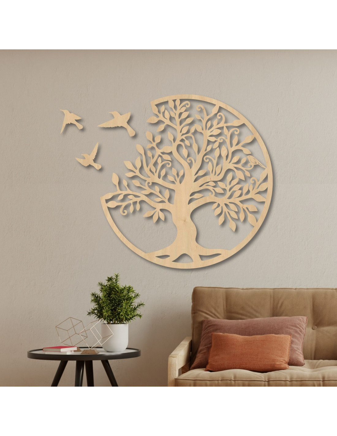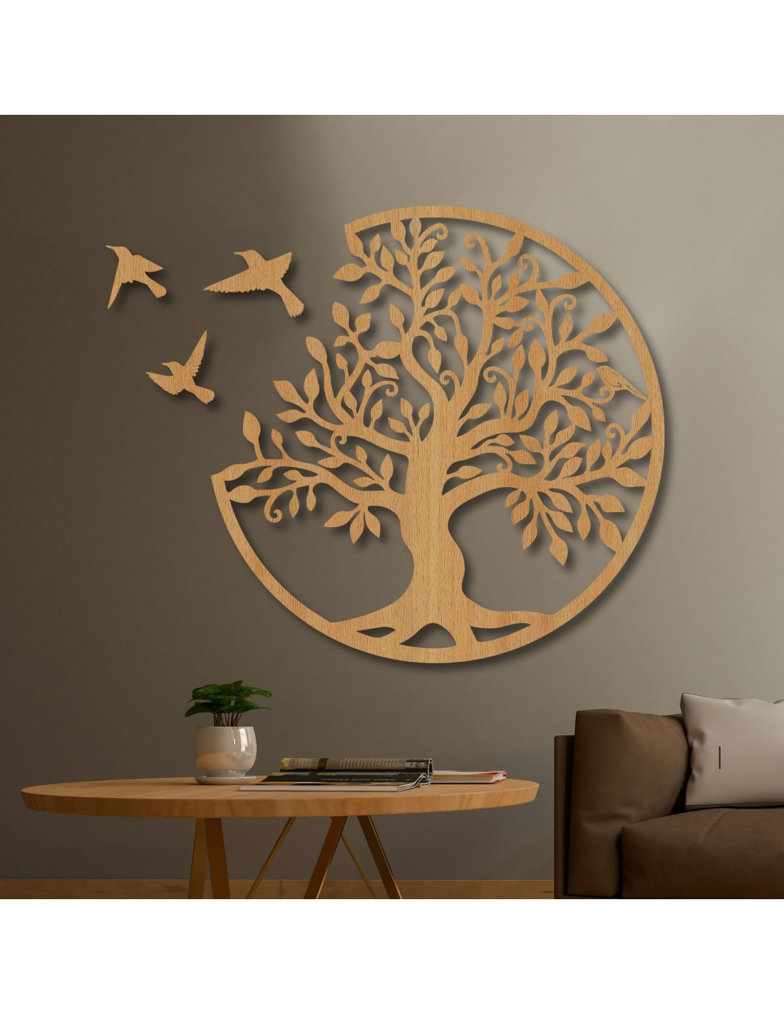 Drevený Strom života so vtákmi – prírodná nástenná dekorácia | GORCHLO