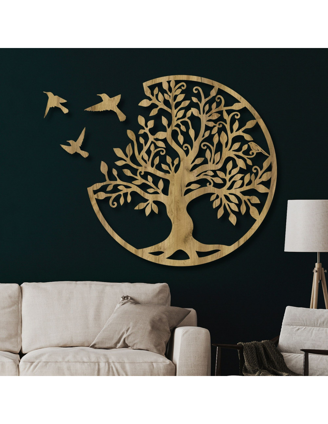 Drevený Strom života s vtákmi – prírodná nástenná dekorácia | GORCHLO