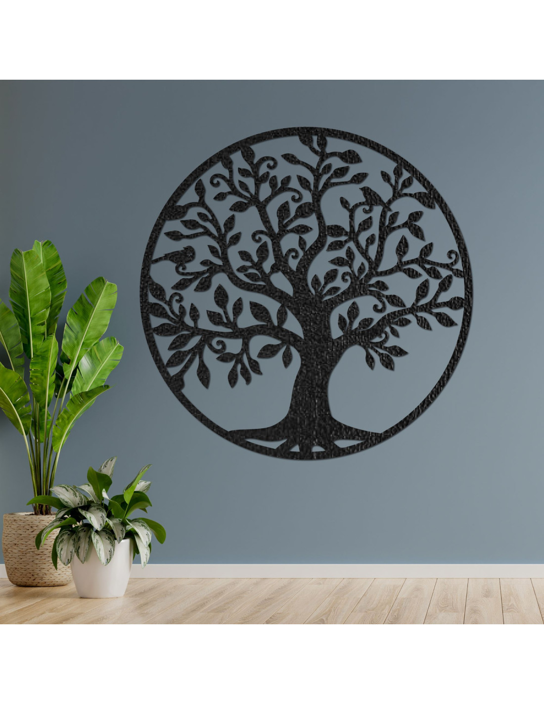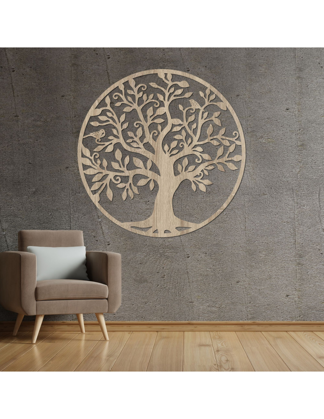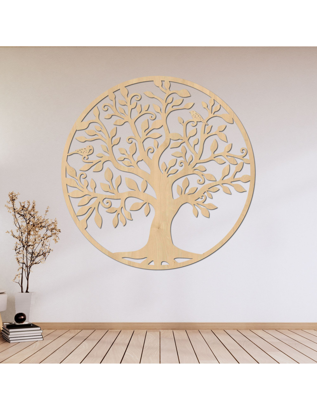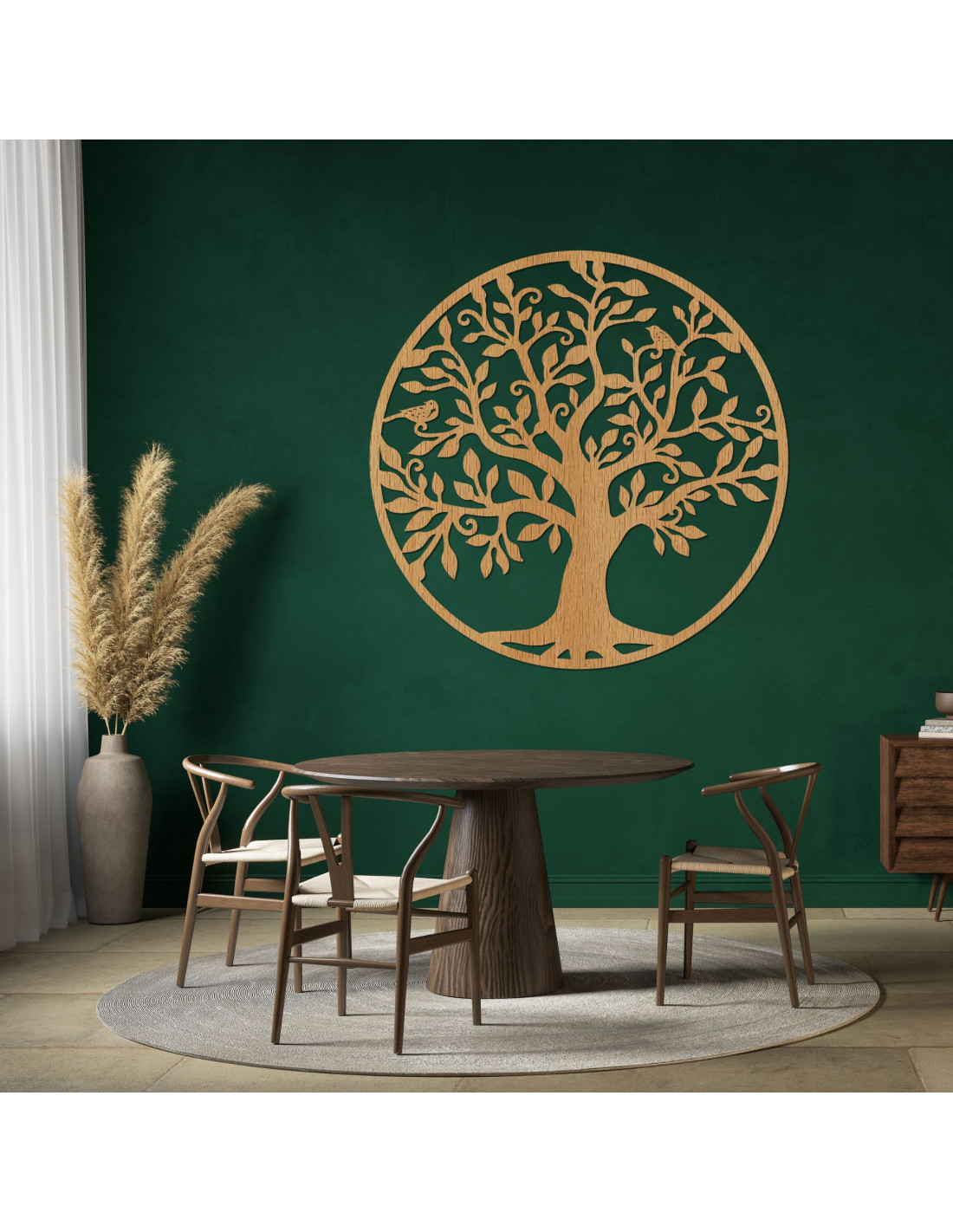 Elegantná kruhová dekorácia stromu života, vyrezávaná z kvalitnej HDF, spája prírodnú krásu s umeleckým spracovaním.