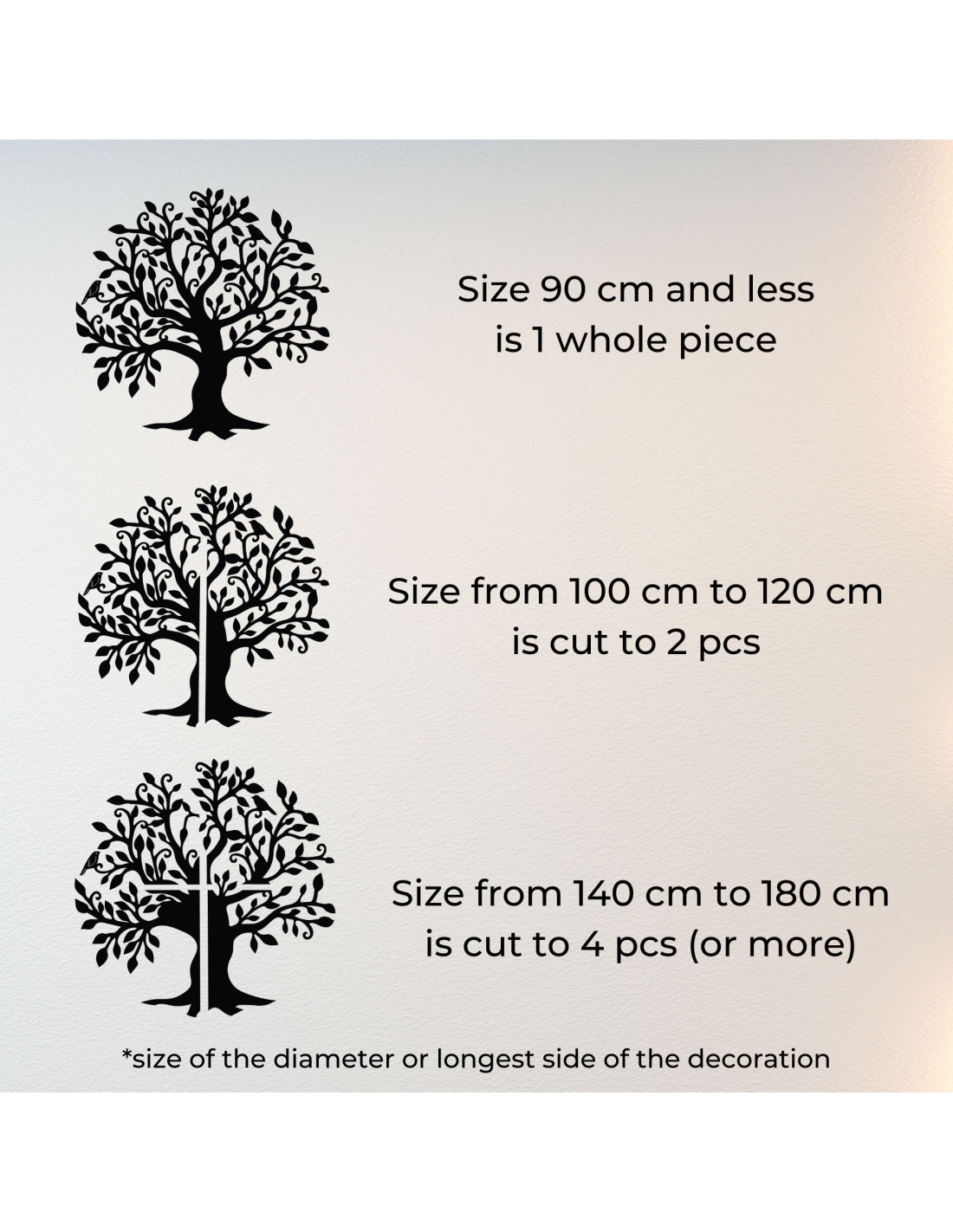 - Od 30 cm do 90 cm - dekorácia je vyrobená ako jeden celý kus