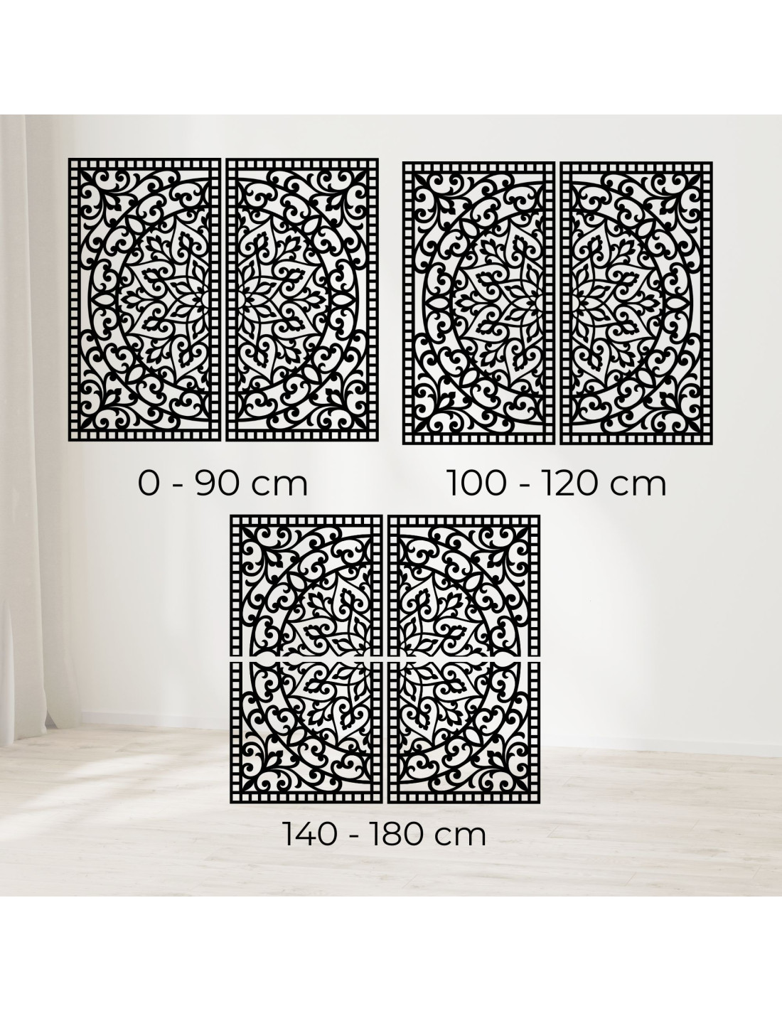 • Od 140 cm do 180 cm - dekorácia je rozrezaná na štyri časti (alebo viac)