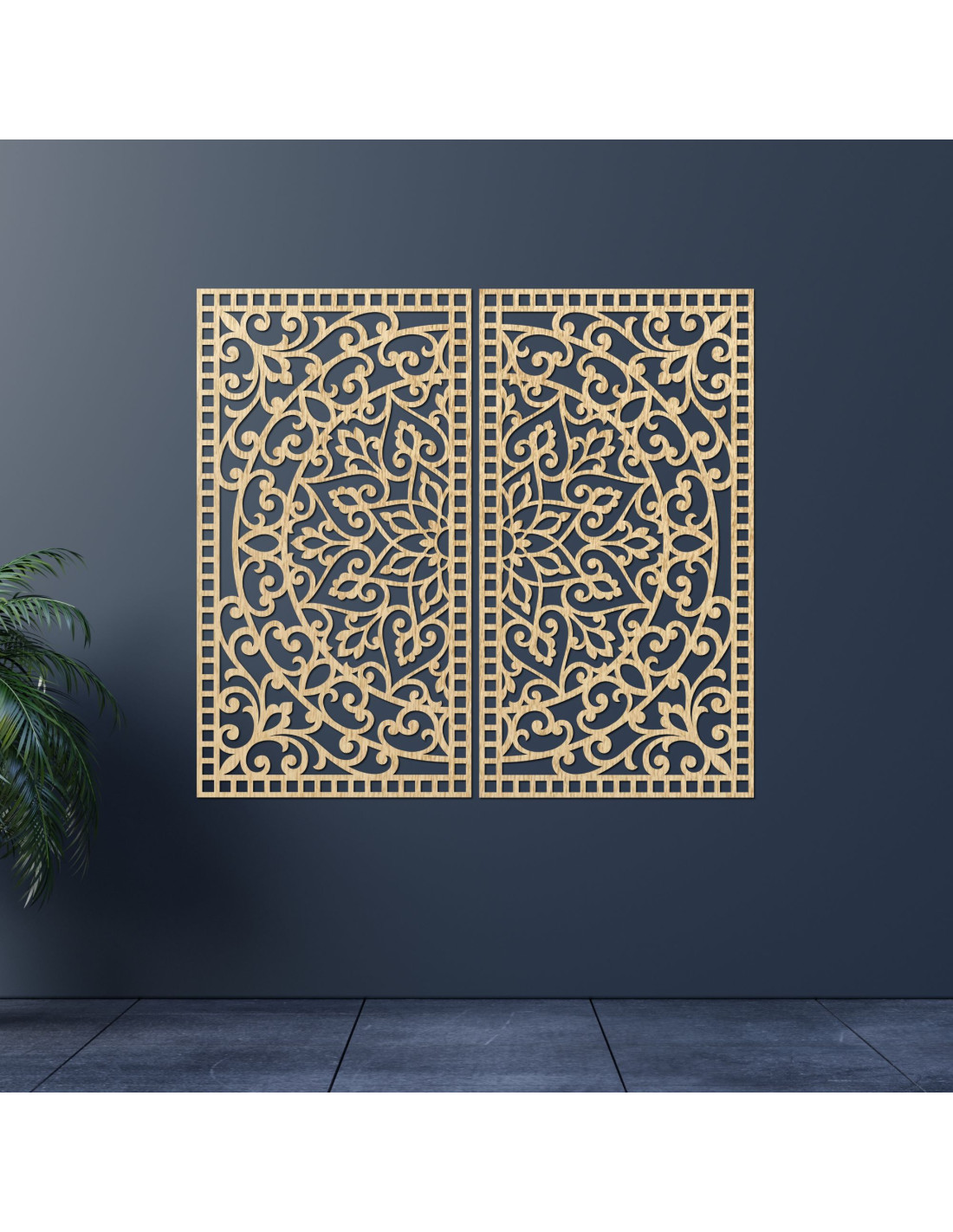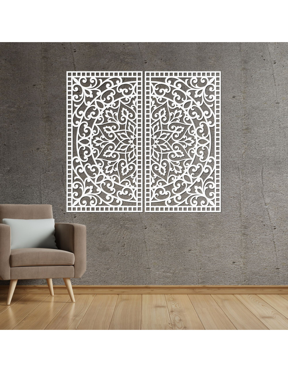 Drevený 2-dielny obraz Mandala – Vyrezávaná nástenná dekorácia - FLOUFER