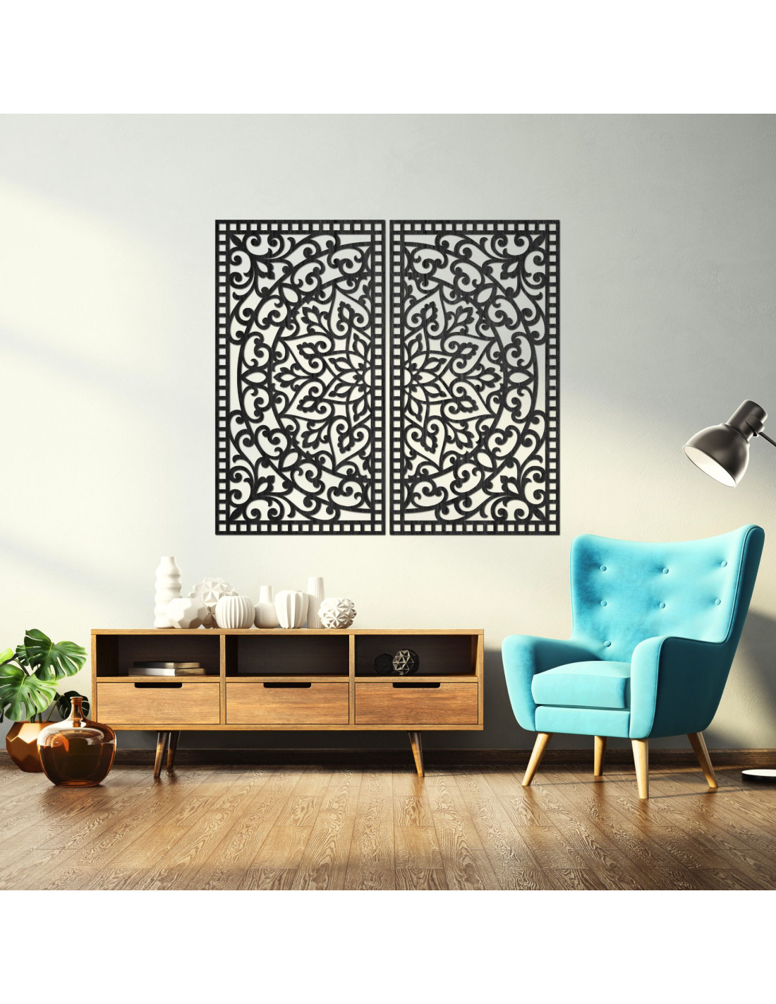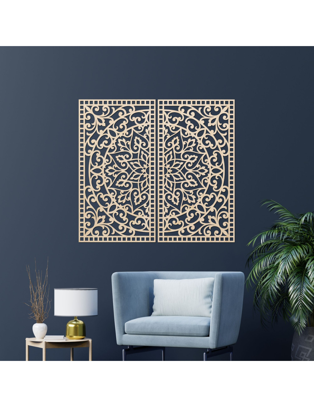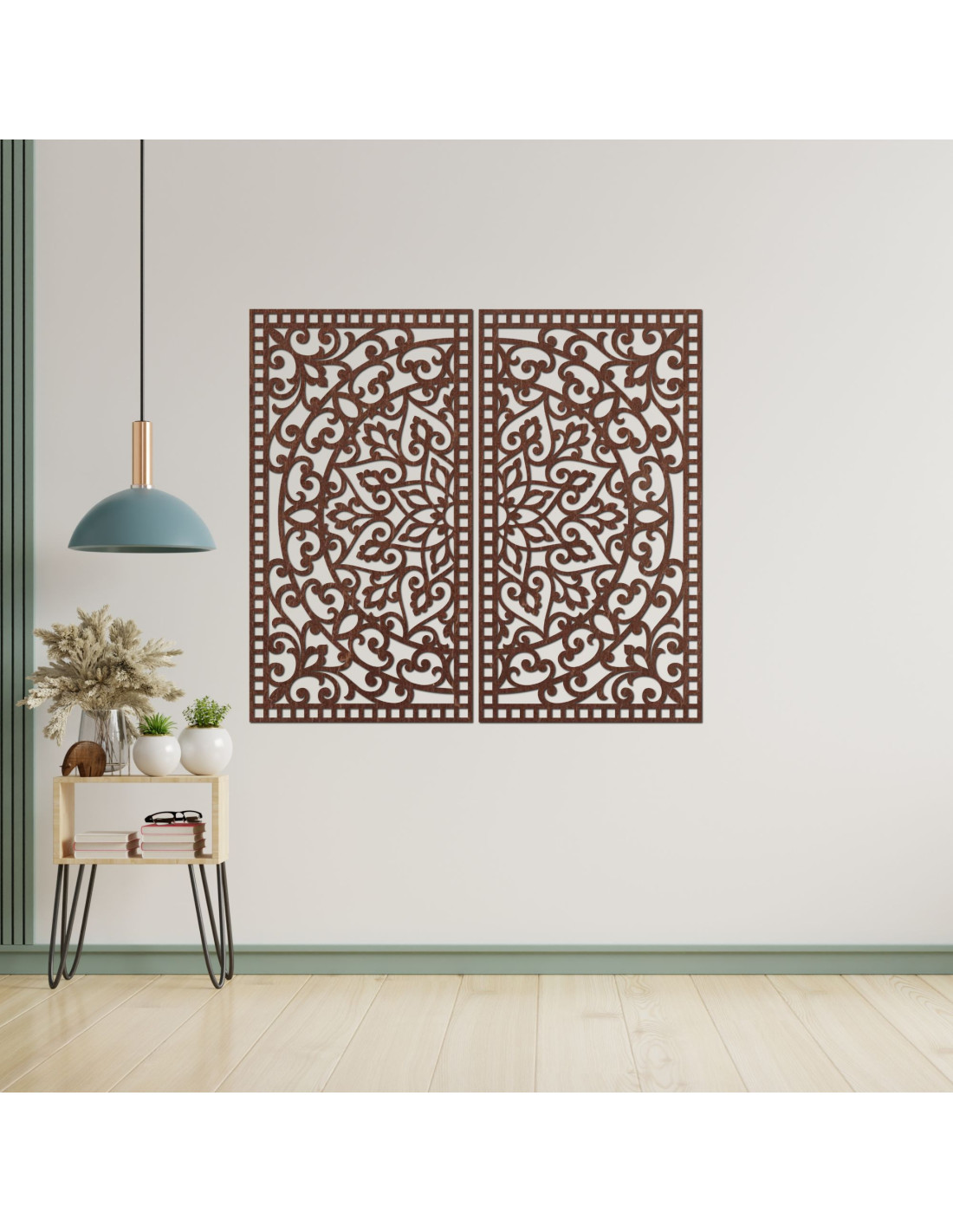 Drevený 2-dielny obraz Mandala – Vyrezávaná nástenná dekorácia