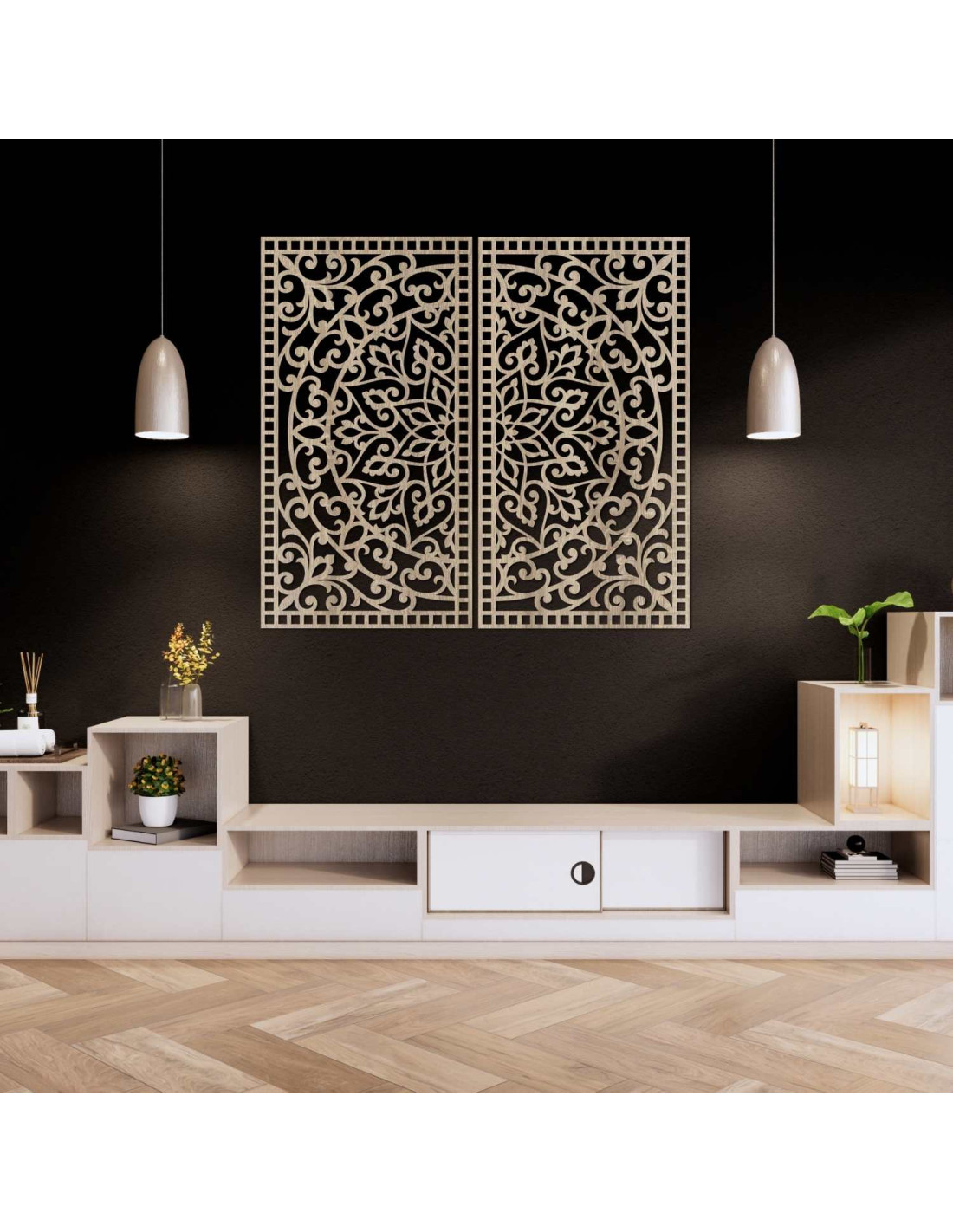 SentopElegantná drevená dekorácia s jemnými ornamentálnymi prvkami spája klasické vzory s moderným prevedením. Symetrický dizajn s dôrazom na detail vytvára pocit harmónie a rovnováhy. Táto dekorácia je dokonalým spôsobom, ako dodať priestoru jedinečný umelecký prvok. Vďaka precíznemu vyrezávaniu vyniknú aj najmenšie detaily.