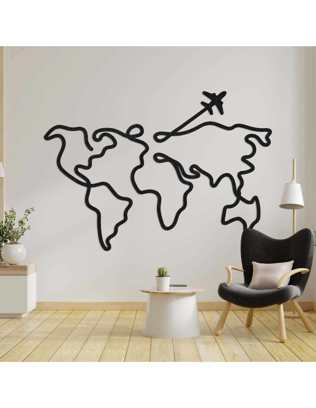 Tvar mapy sveta spojený jedným elegantným ťahom vytvára dojem nepretržitej cesty.