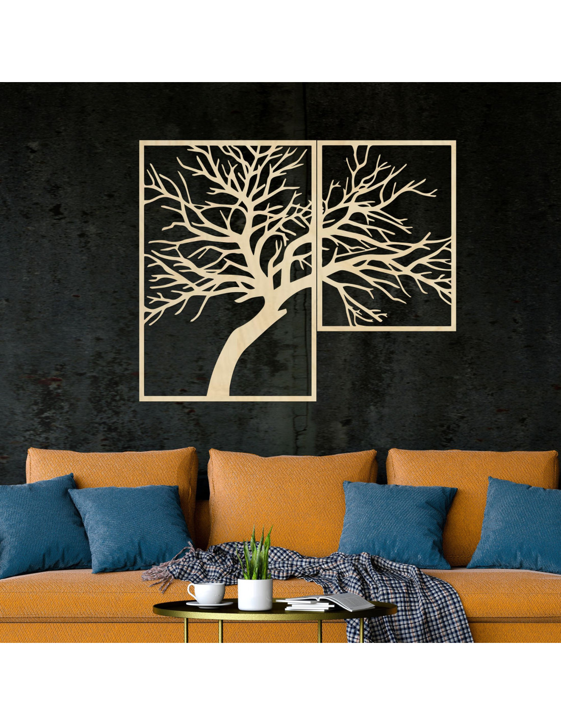 Dvojdielny drevený obraz Strom života – jedinečné umelecké dielo, ktoré spája prírodnú krásu, rovnováhu a moderný dizajn.