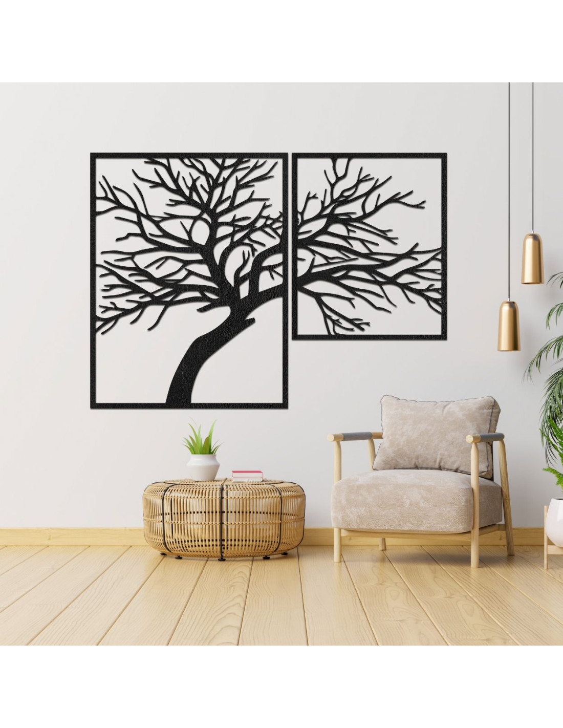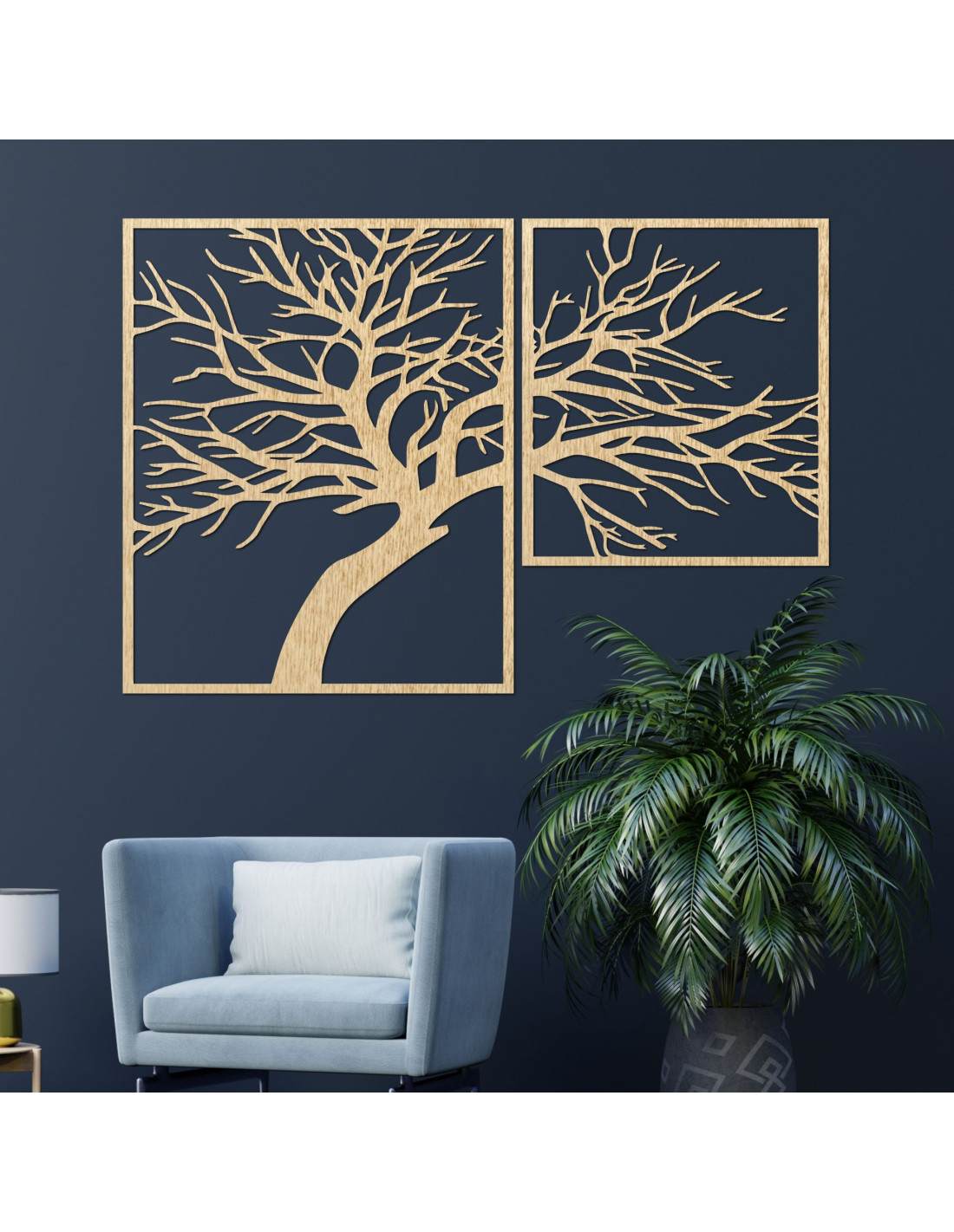 Dvojdielny drevený obraz Strom života – jedinečné umelecké dielo, ktoré spája prírodnú krásu, rovnováhu a moderný dizajn.