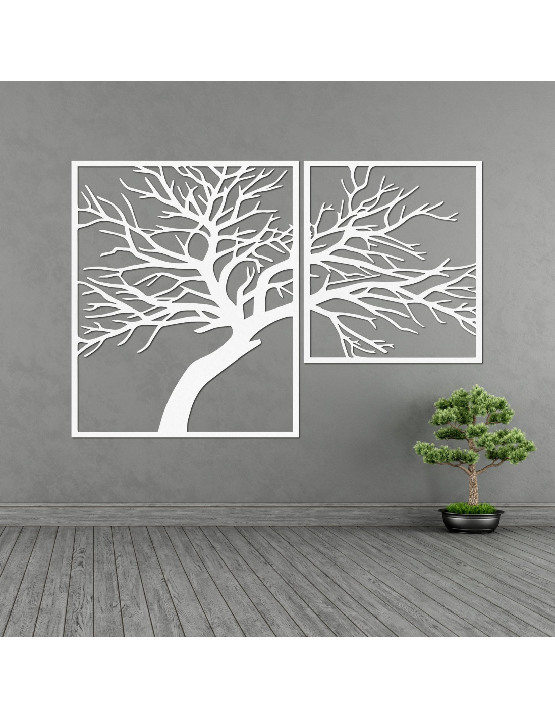 Dvojdielny drevený obraz Strom života – jedinečné umelecké dielo, ktoré spája prírodnú krásu, rovnováhu a moderný dizajn.